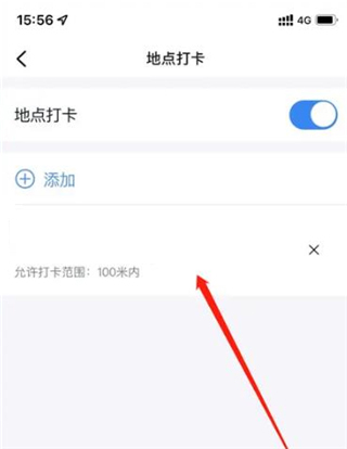 在地点打卡设置中,点击当前的打卡地点进入设置。