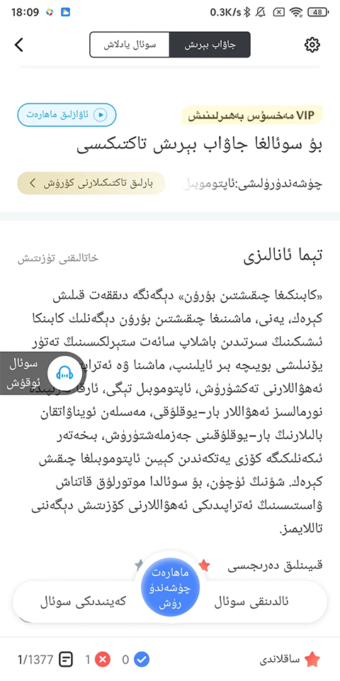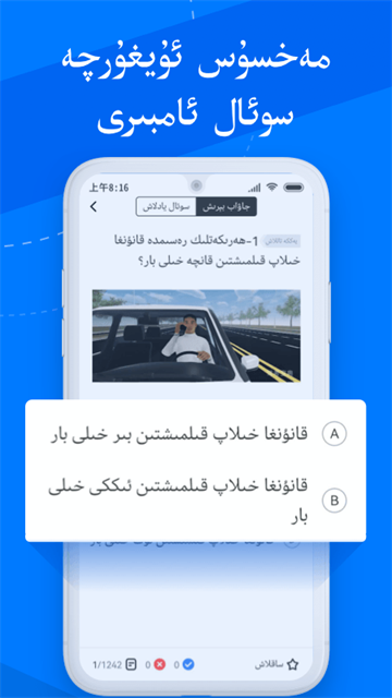 此外,驾考宝典维语版还具备智能错题集功能,能够根据用户答题情况自动归纳易错知识点,方便用户查漏补缺、强化记忆。驾考宝典维语版以科学的学习路径设计、精准的题库匹配和人性化的功能设置,助力维语用户轻松备考、顺利拿证,是维语地区驾考学员值得信赖的学习助手。