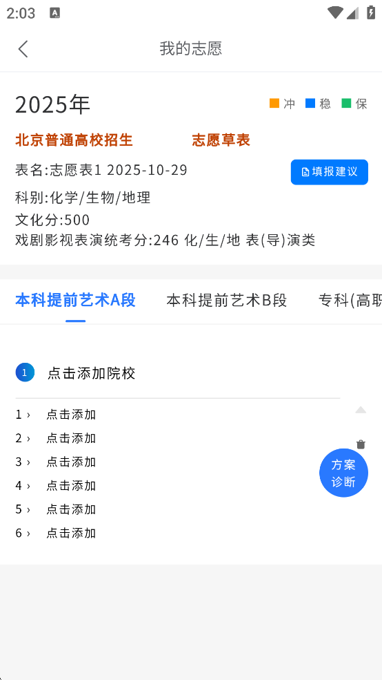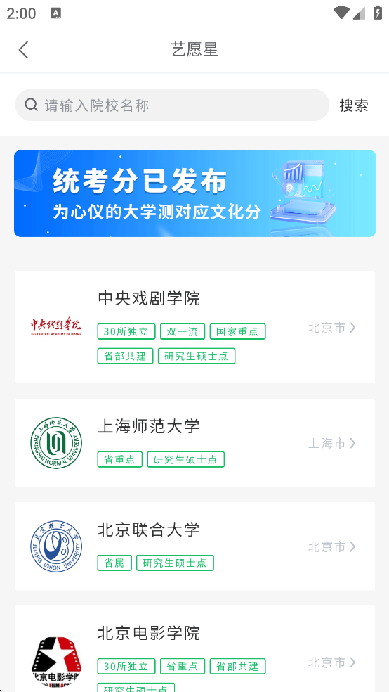 v3.6.35艺愿星是一款志愿填报软件,专为美术与设计类、音乐类、舞蹈类、播音与主持类、表(导)演类、书法类、体育类等艺体考生提供全流程志愿填报解决方案。考生可以根据自己所在的省份来填写信息,软件会给用户推荐上千所统考院校,用户还能在线查看全国所有院校的招生信息、以往录取线、专业介绍等多方面的内容。艺愿星App通过科学算法为考生提供科学的填报指导,有需要的朋友欢迎下载体验!