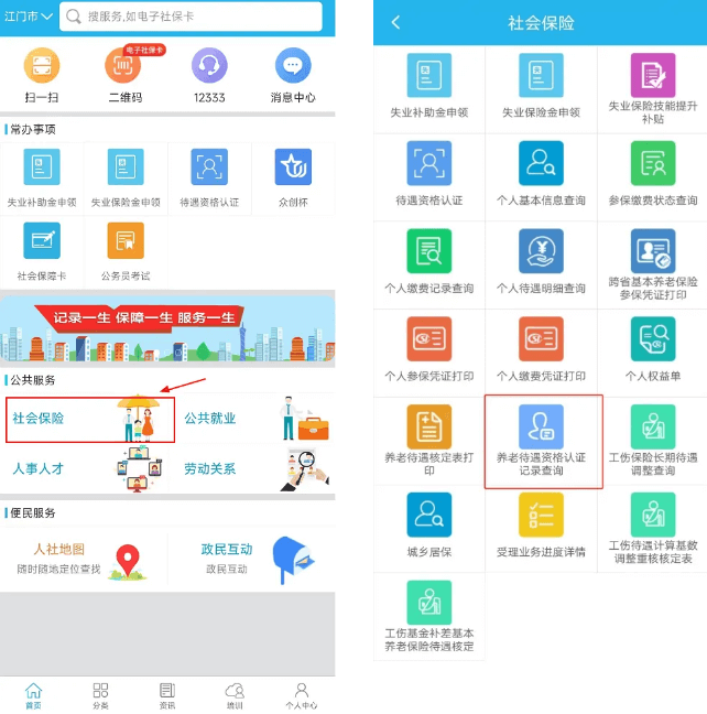 待遇资格认证,为参保人提供城乡居保待遇领取资格认证、职工养老离退休资格认证、工伤待遇资格认证、机关事业单位退休人员领取养老金资格认证等服务。操作步骤如下: