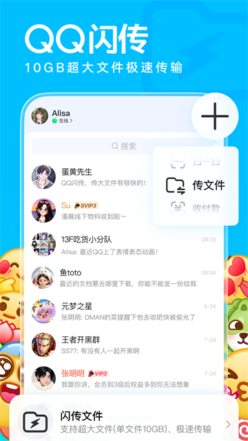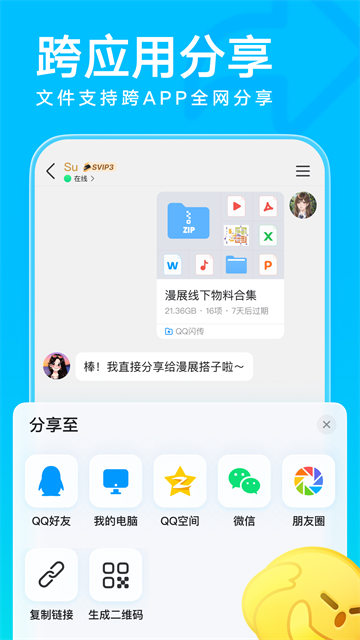 - 新增QQ闪传功能,10GB大文件极速传输,支持跨应用分享;