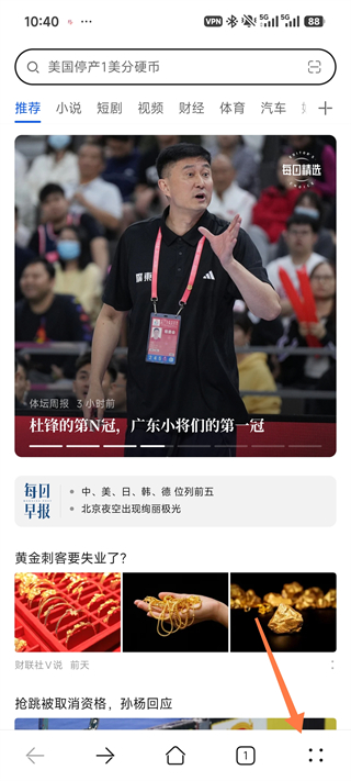 1、打开华为浏览器App,点击右下角的【四个点图标】。