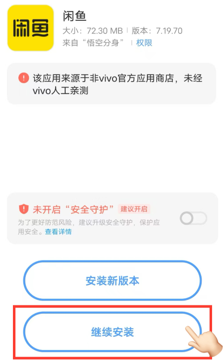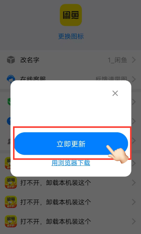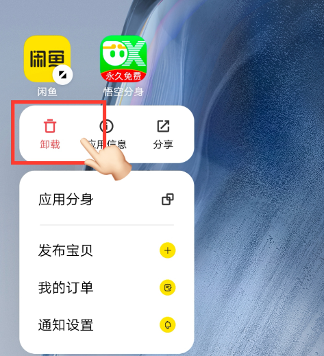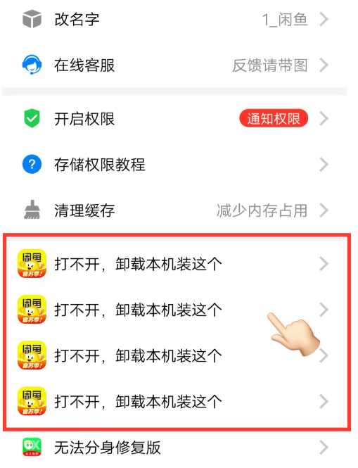 2、点击悟空分身首页闲鱼图标,进入详情页,点击”打不开,卸载本机装这个“