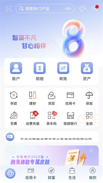 全新的界面感官,手机银行2025版皮肤深度融合甘肃文化、建筑、民俗等特色元素,通过智能定位精准匹配城市并配置个性化皮肤,领略甘肃辉煌历史与壮美河山的魅力。
