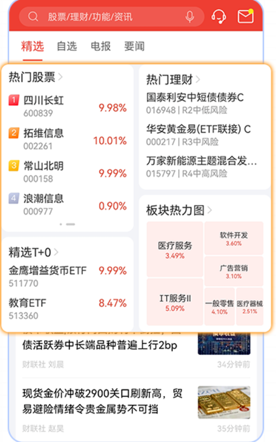 2、热门股票、热门ETF、热门理财、板块热力图,助力洞察市场热点,把握投资先机。