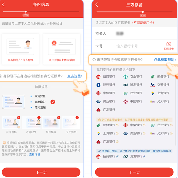1、身份证/银行卡不在身边或不记得卡号?增加操作指引。