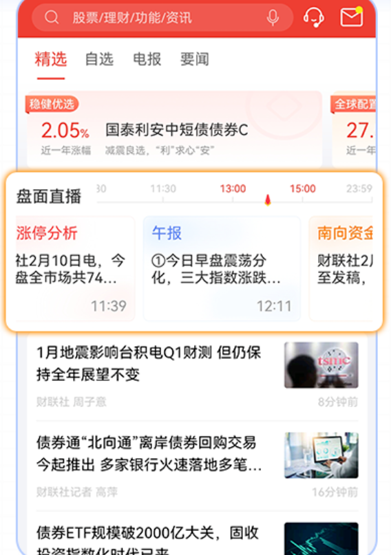 1、新增盘面直播,24小时不间断提供精挑细选的投资资讯。