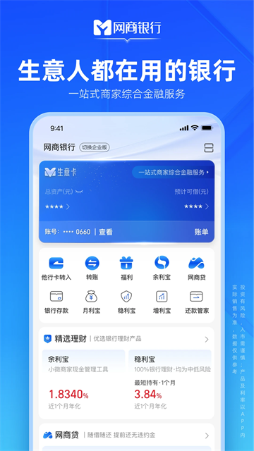 网商银行App是由浙江网商银行官方专门为小微企业、大众消费者、农村经营者与农户、中小金融机构所打造的一款手机银行软件,可为用户提供不同形式的贷款、转账、理财等理财金融服务,让用户随时都能便捷的办理各种掌上银行业务,减少通勤以及窗口排队时间。用户在绑定自己的银行账户后,还可随时随地进行查看当前账户余额,查询近期账单等操作。