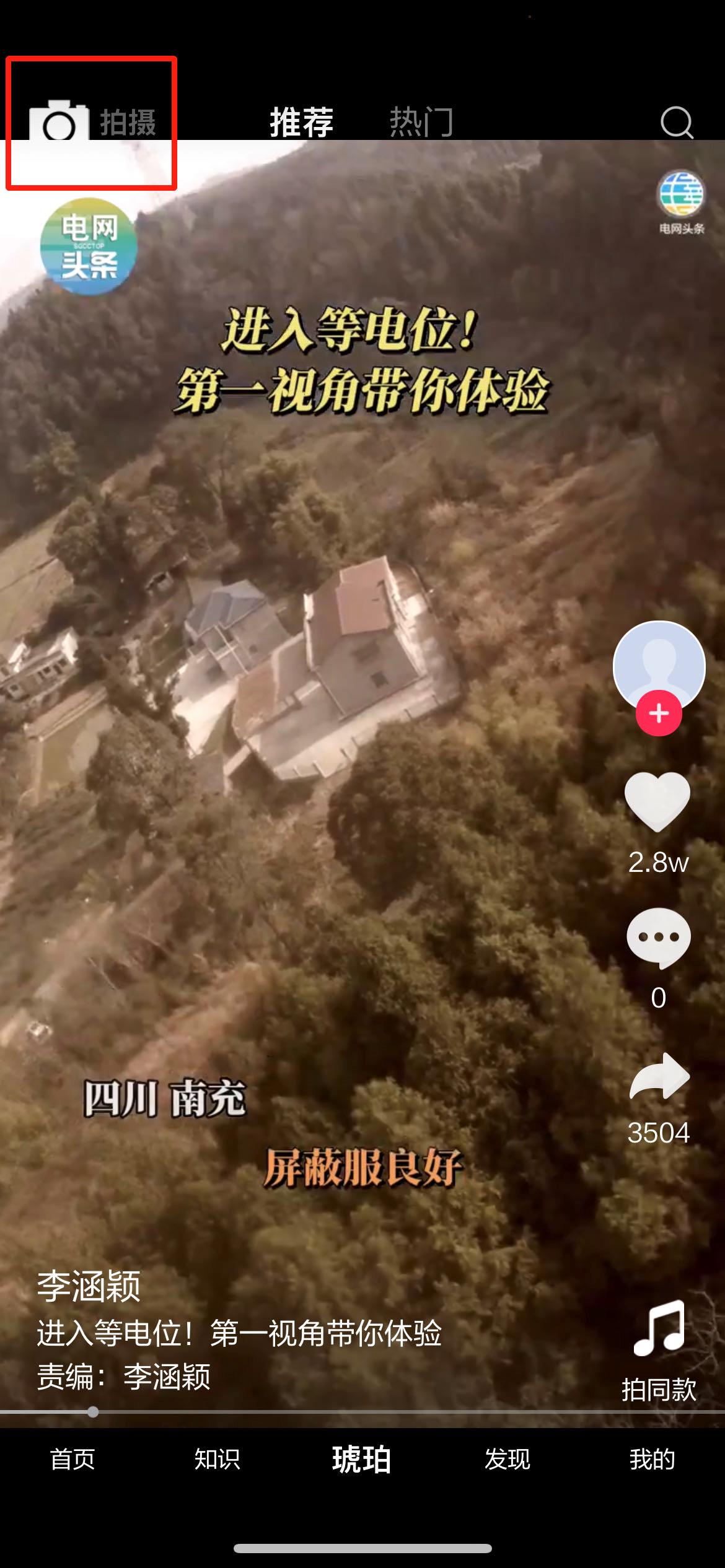 我们下载安装好国家电网头条app后,点击下方导航栏中的【短视频】功能,然后再点击上方的拍摄按钮,就可以进行短视频的拍摄;