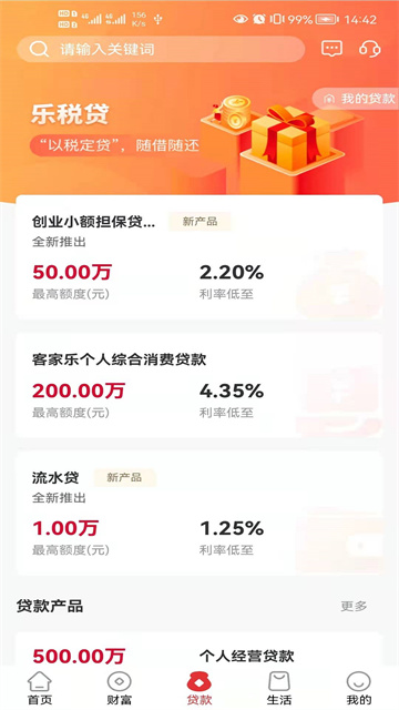 “乐易贷”与“乐税贷”网贷产品,可全线上实现贷款申请、提款、还款。