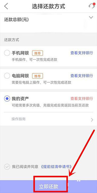 4、进入还款方式界面,自行选择还款方式,点击立即还款。