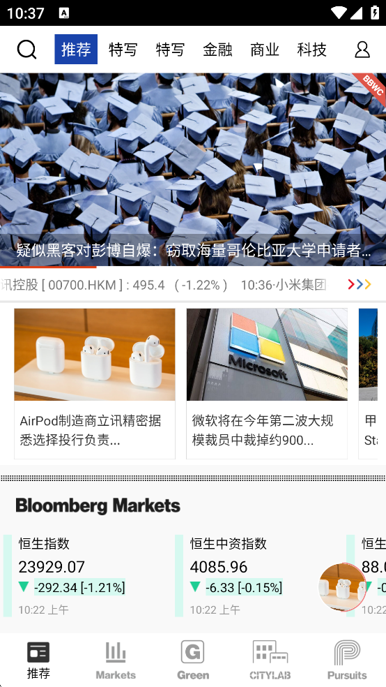 4、源自24小时在线播放全球商业/金融内容的彭博TV,包括重要事件呈现、全球商业金融有影响力的人物独家采访、彭博社深度评论和事件分析等精彩视频内容。