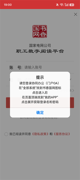 书香国网App需要使用专业的国家电网账密才能登录,用户可以先登录协同办公,在“全部系统”找到书香国网图标点击进入后在页面顶端找到“我的APP”点击展开获取登录名和密码