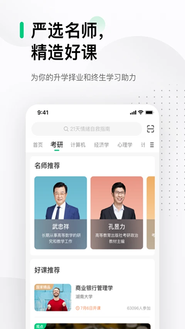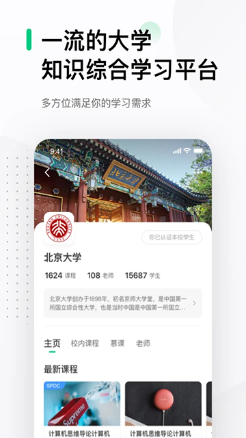 来自985高校的课程,从基础科学到文学艺术、哲学历史到工程技术、经管法学到农林医药,内容应有尽有,完全免费。
