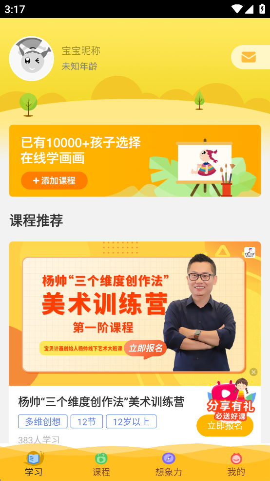 课程直播有人讲、成果画作有鉴赏。