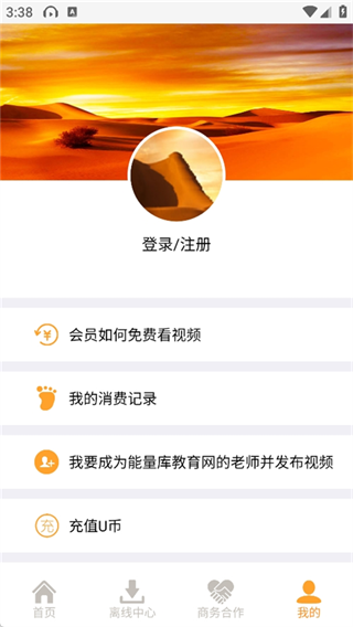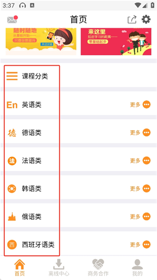 2、可以看到首页、离线中心、商务合作、我的等四个模块。