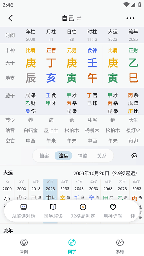 5、点击下方的国学,可以查看国学运势分析。