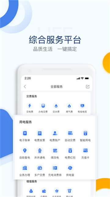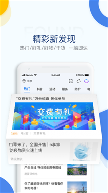v3.7.44电e宝APP是集公共事业交费、电力在线服务、金融理财于一体的民生服务云平台。服务全国上亿用户,业务范围全面覆盖国家电网经营区域内26个省市和自治区(北京、天津、上海、重庆、河北、河南、山东、山西、江苏、四川、浙江、福建、江西、安徽、湖南、湖北、黑龙江、吉林、辽宁、甘肃、宁夏、青海、陕西、内蒙古、新疆、西藏)。