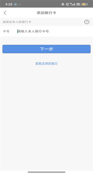 2、接着就可以点击添加银行卡。