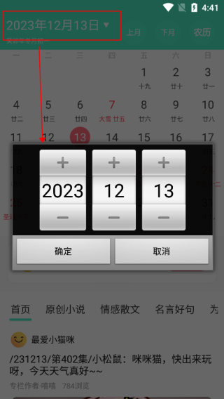 1、进入天天日历app,点击上方可以任选日期进行查询