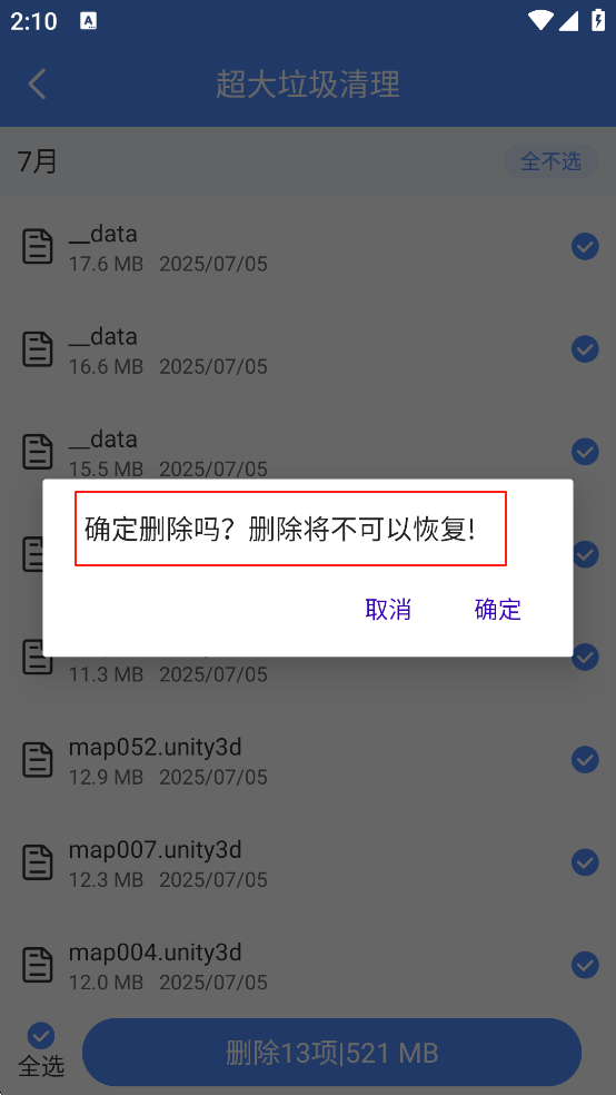 4、过大垃圾,智能筛选