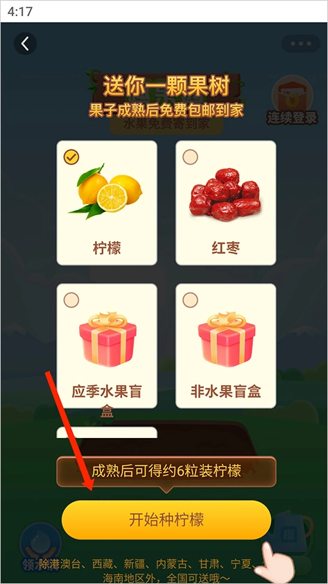 2、进入后,选择一个自己喜欢的水果,点击开始种植。