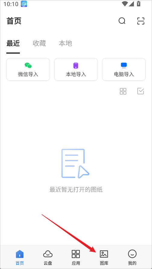 1、打开CAD迷你看图软件后,在底部功能栏中找到并点击【图库】选项。
