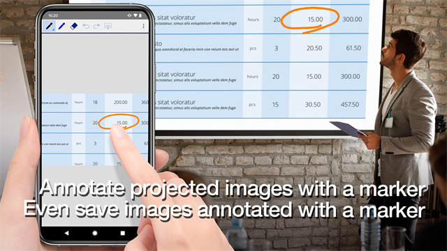 5、标记功能可以对投影照片和文件进行高亮和注释,还可以将注释保存到设备上。