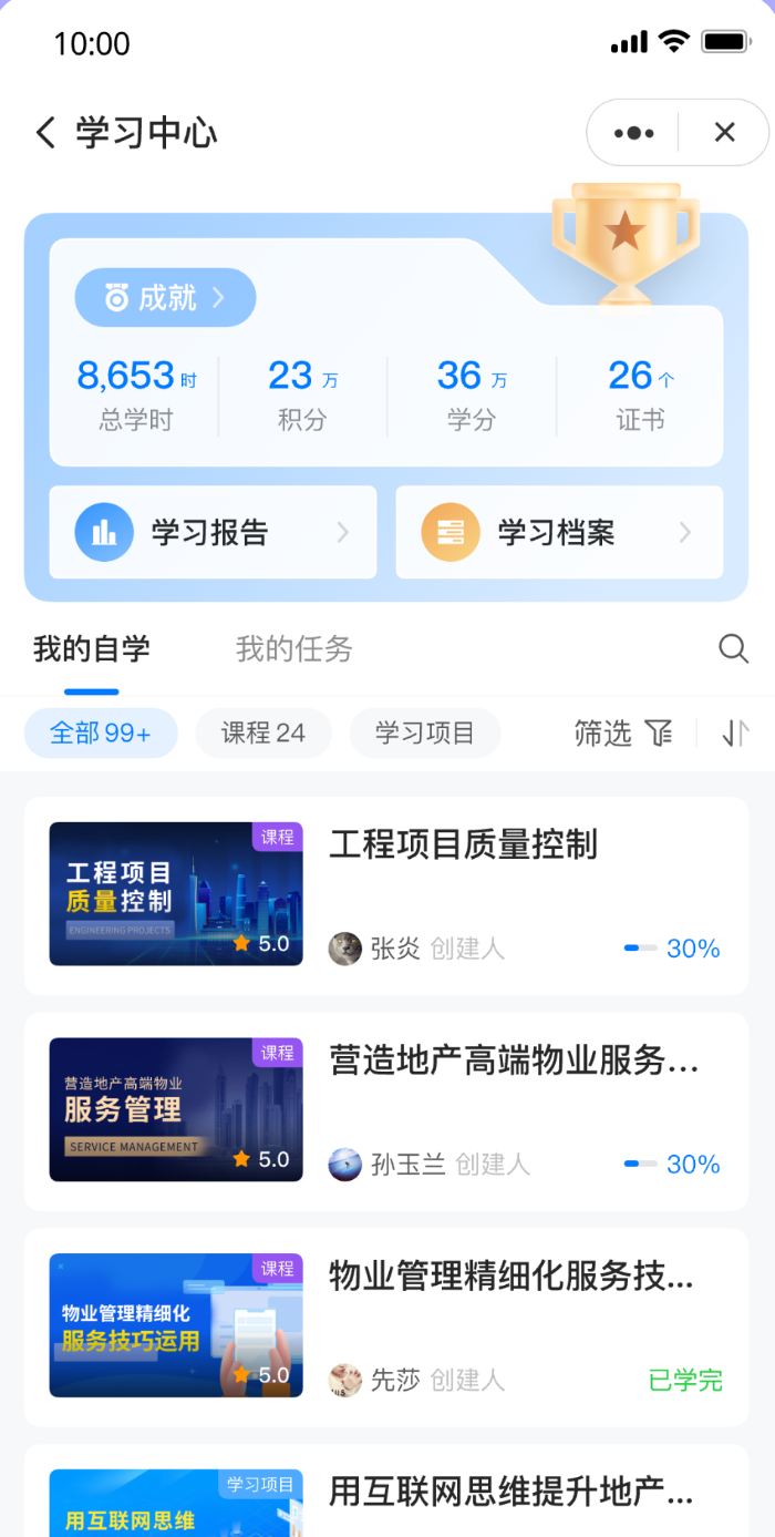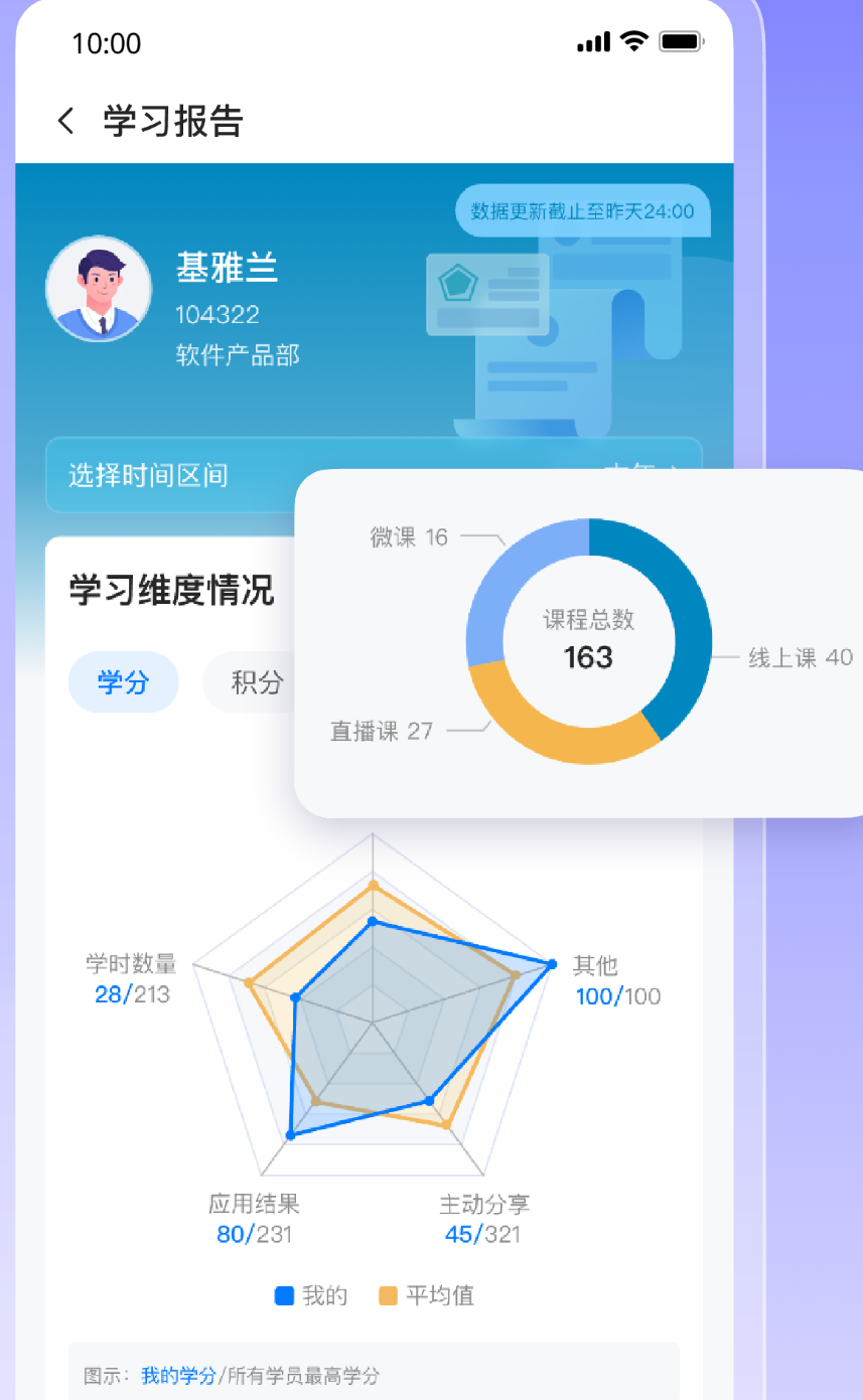 随时监测员工学习进度、考试学分