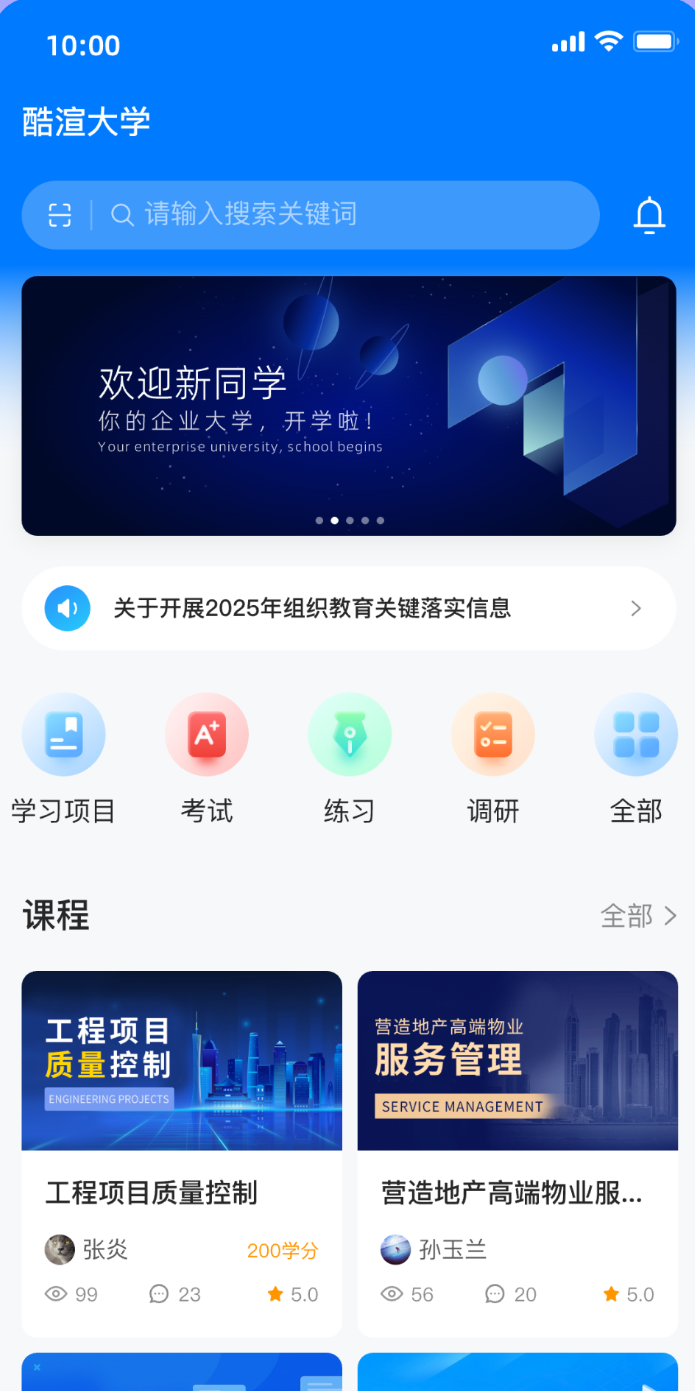 v6.2.0酷学院App是一款企业精准化学习平台软件,旨在帮助管理人员更好的管理培训,让学员更系统的学习相关企业培训知识,让学习变得简单高效化。通过课程创建、分派跟踪、数据分析、岗位认证等36个场景来提升帮助用户学习效率,改进学习效果。并且,酷学院App内还整合了销售、财务、开发、技术等多方面教育教材及相关学习视频,针对不同岗位设立有对应的学习内容,灵活的在线互动课堂,让你随时随地都能在线学习。