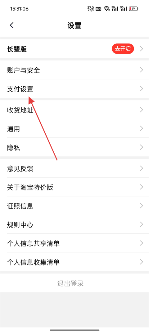 3、在设置页面选择支付设置