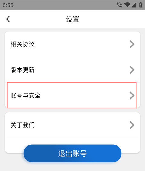2、点击账号与安全;