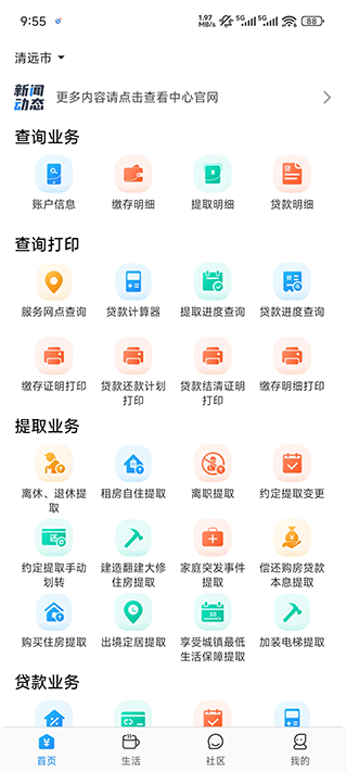 『便民服务』新闻动态查看缴存地公积金中心的政策解读、业务指南和中心文件信息;提供服务网点查询、房贷计算器、智能客服等公积金服务。