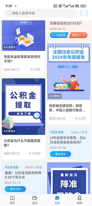 『社区互动』掌握与您息息相关的住房相关知识,不懂的随时来问。