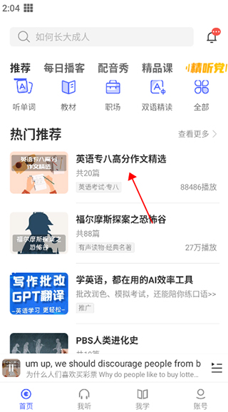 兴趣学习:名人演讲、公开课、商务英语、旅游英语、生活英语等丰富资源。