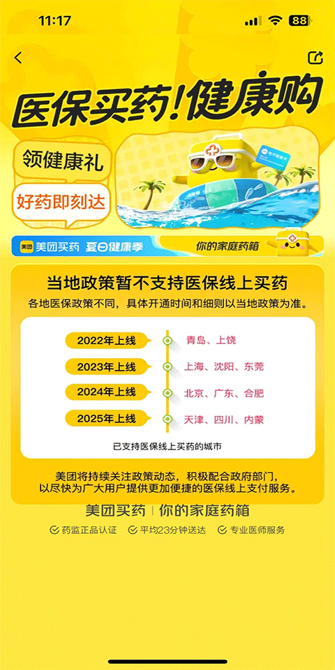 2、温馨提示:目前医保买药服务仅支持以下地区,若您不在以下地区,则无法使用医保买药;
