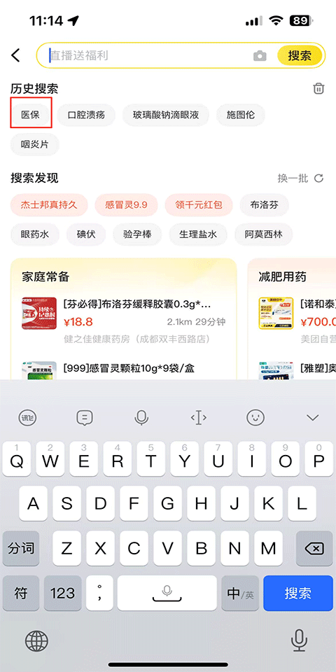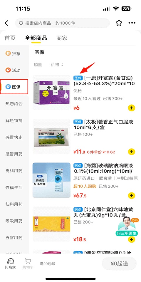 4、选择一家药店进入,筛选带蓝色【医保】标签的药店及药品(非所有医保药店支持全品类支付);