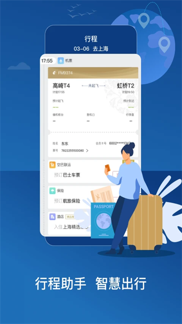 • 首页行程卡片自动显示二维码,机场过关前快速扫码,登机更从容。