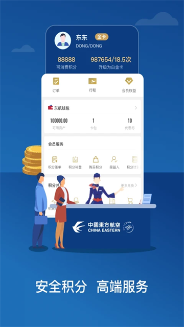 可以累积自己的飞行里程,可以用来兑换机票和商品。