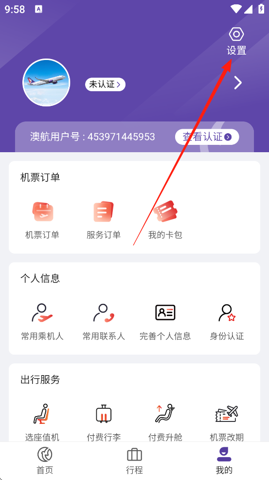 1、打开澳门航空App,点击【我的】