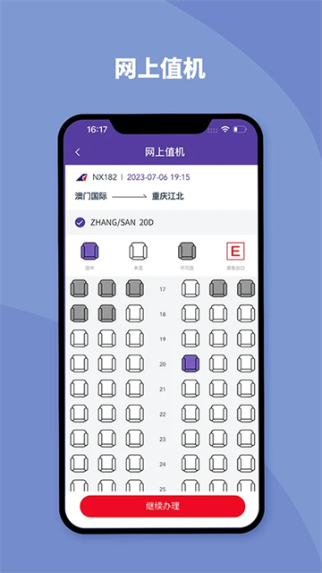 手机客户端自助办理值机,无需在机场排队等候。