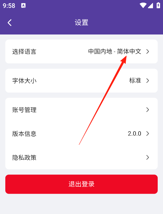 3、点击选择语言