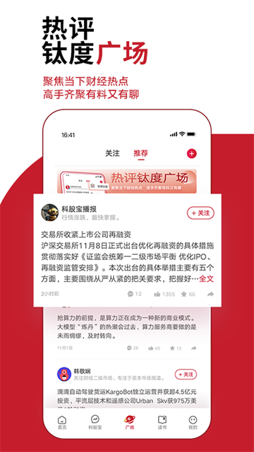 云集全球优秀财经主播,通过访谈、对话、直击现场等多种形式进行财经评论,不同视角分析市场新动向,更有《何谓》、《华楠直播》、《相对论》等多档财经IP节目。
