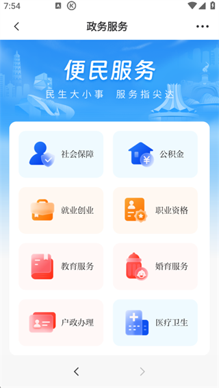 2、点击首页这里有多种服务,这里以【便民服务】为例。