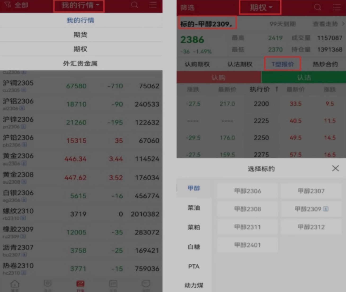 打开手机 App,点击菜单“行情”,正上方下拉选择期货、期权、外汇贵金属查看行情报价并且提供上期所的五档行情,列表增加主力标志和套利合约
