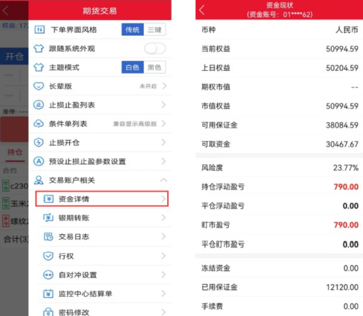 交易界面点击右上角,在交易账户相关下,可点击“资金详情“,查看资金状况