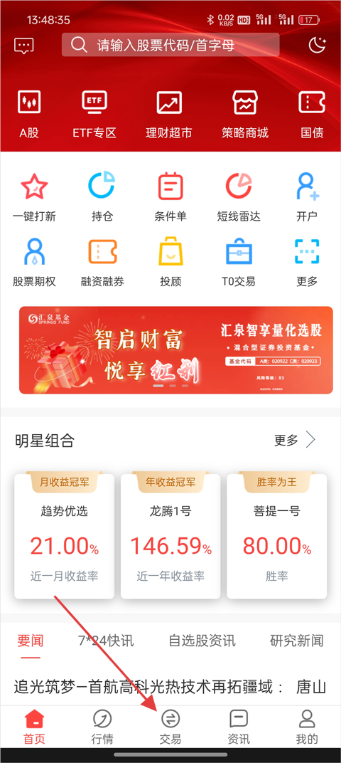打开金元证券APP,进入【交易】页面;