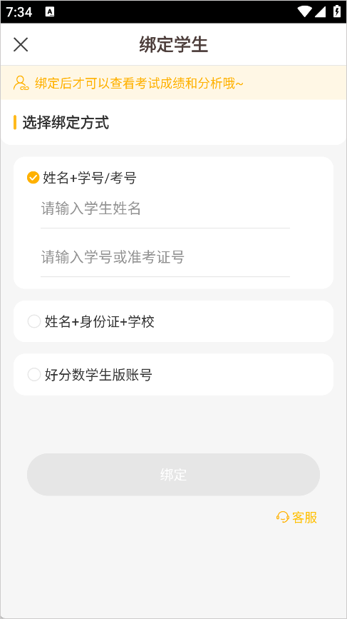 PS:这儿的学号和学籍号是指校园教师导入到好分数体系里面的学号,若无法绑定,请联系校园教师获取正确学号进去绑定。