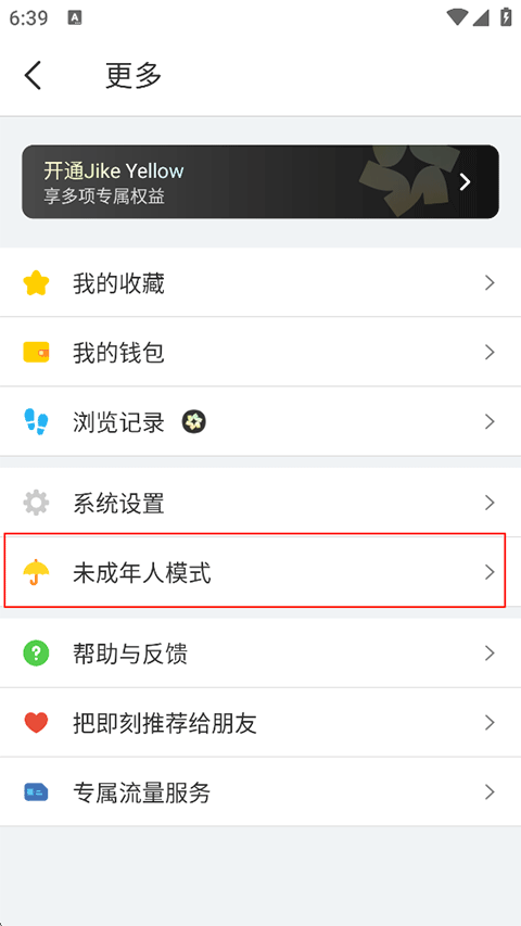 2、在更多页面找到并点击未成年人模式;