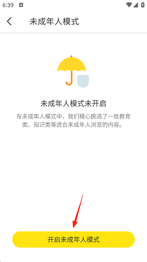 3、点击下方开启未成年人模式。